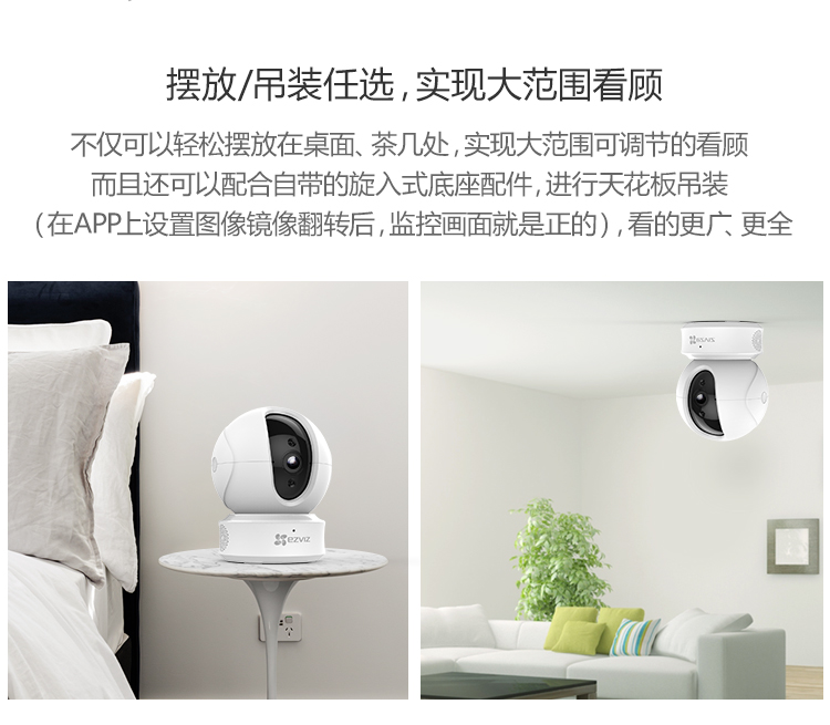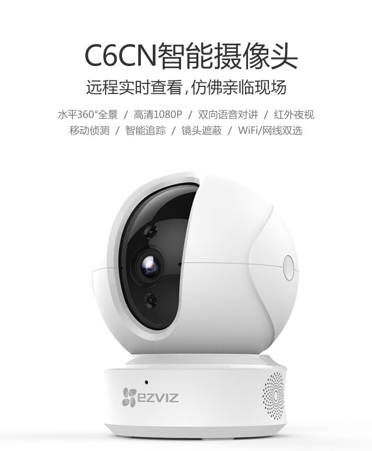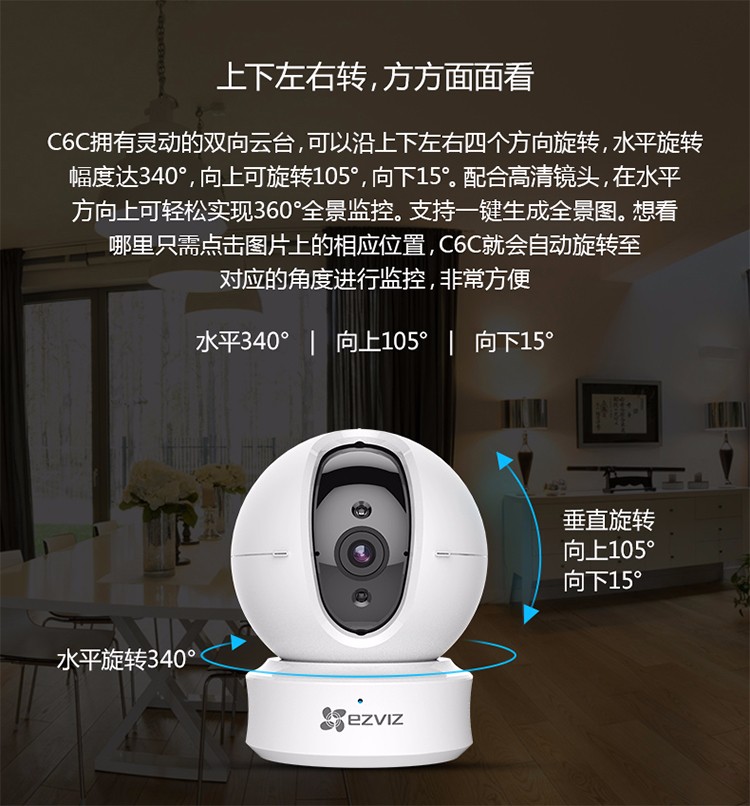 海康螢石C6TC家用云臺監(jiān)控攝像頭帶移動偵測電話提醒